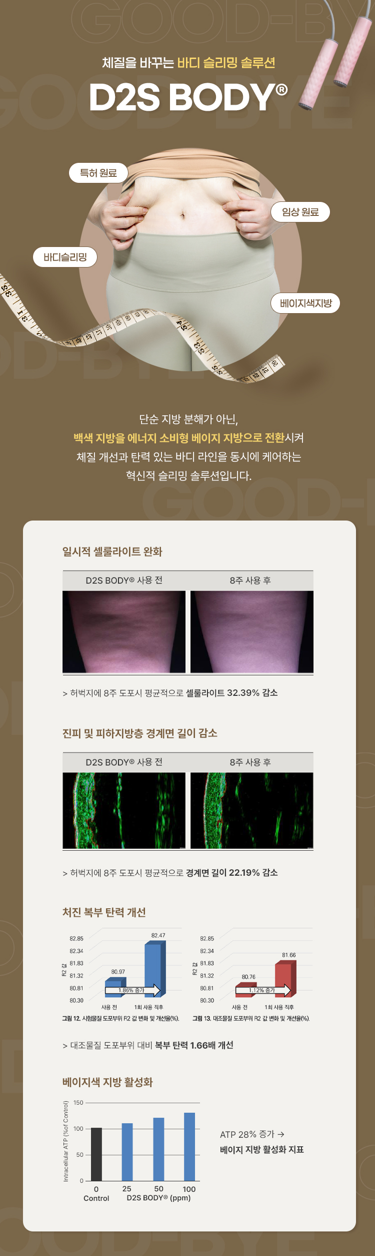 이제 그 과학을 일상 속 케어로 담아낸 솔루션, 자사 특허 제품 D2S BODY®를 소개합니다.