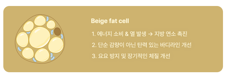 베이지 지방은 에너지 저장과 열 생성을 동시에 할 수 있는 특별한 성질을 가진 지방 조직으로,